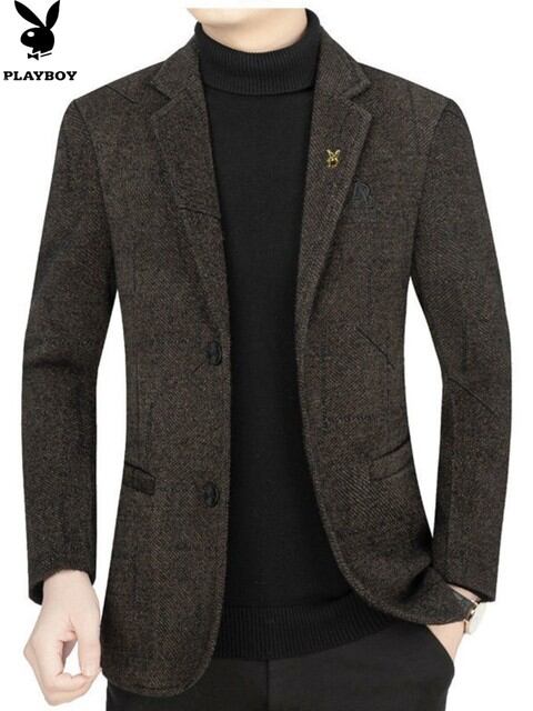 プレイボーイカジュアルスーツメンズジャケット春と秋の新しい高級スーツ若者と中年のウールファッショントップス